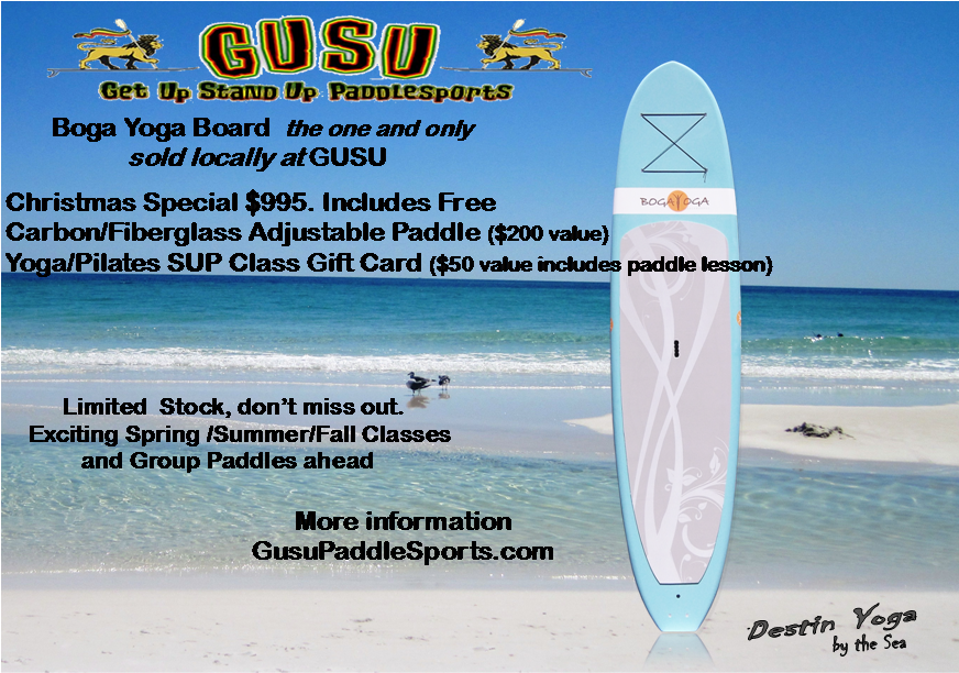 Special 4 Class Card + Custom 75 min Private Yoga: $75 to get started in classes and or on to a personal practice 6 Paddleboard Yoga /Pilate Classes or Paddleboard Class Rental: only $60 can be used for Yoga or Pilates Sub Classes and or board rental for class ($20 add a yoga mat or add a paddle board) Gifts can be personalized with a yoga mat included, clothing ideas, books...a private session or sessions to get stated in a class with a discounted class card...ect. . |